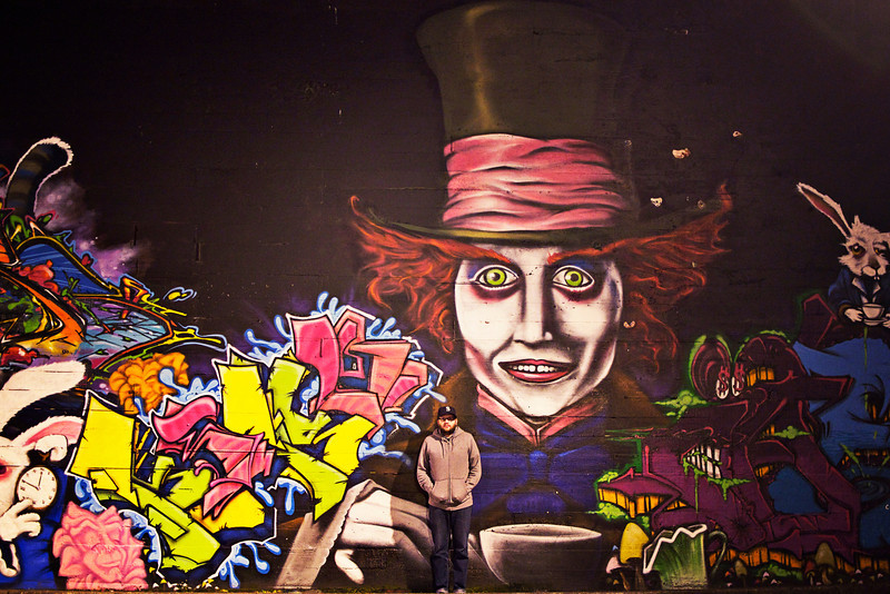 Some people are incredibly talented… How does someone learn that they have the ability to use a can of spray paint this way? I’d look like a bumbling fool. While I like to draw – this is an art form completely on its own. I love it. I’ve also decided my husband has become the “stand in front of the graffiti so I can take your picture” guy.