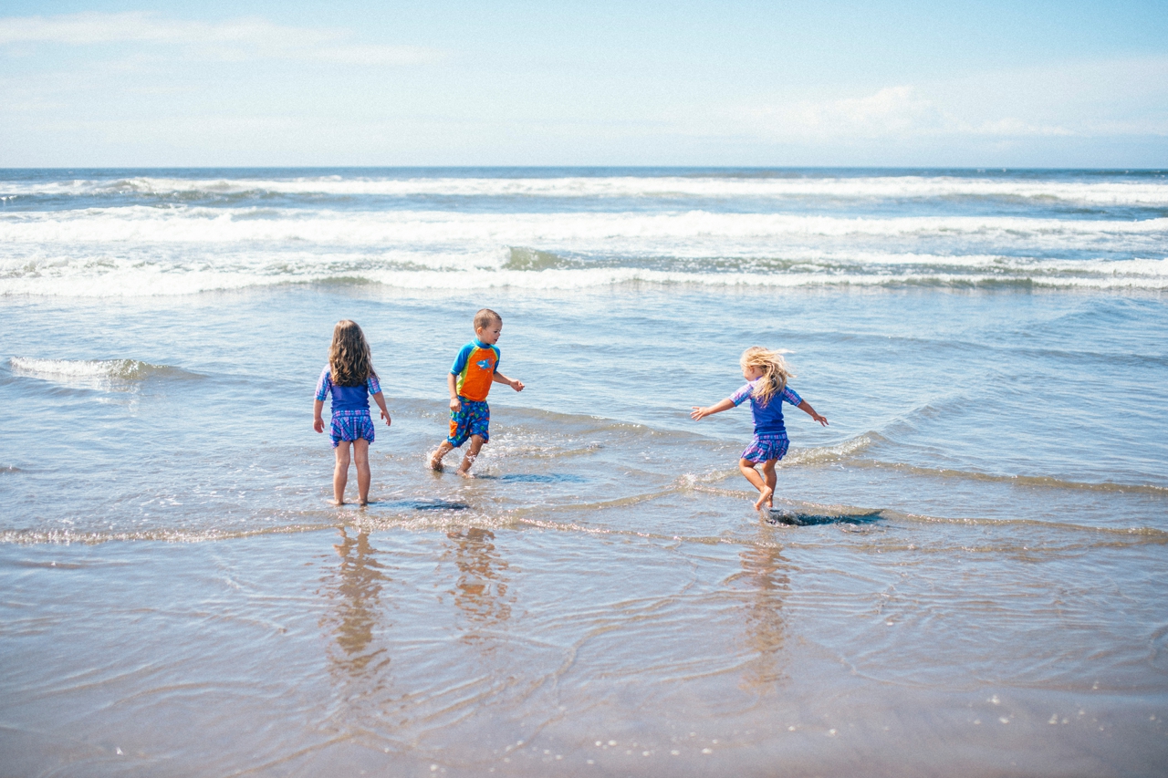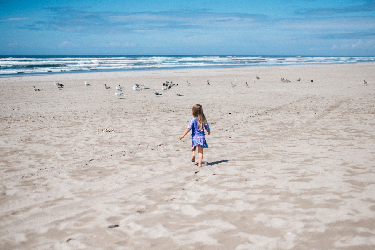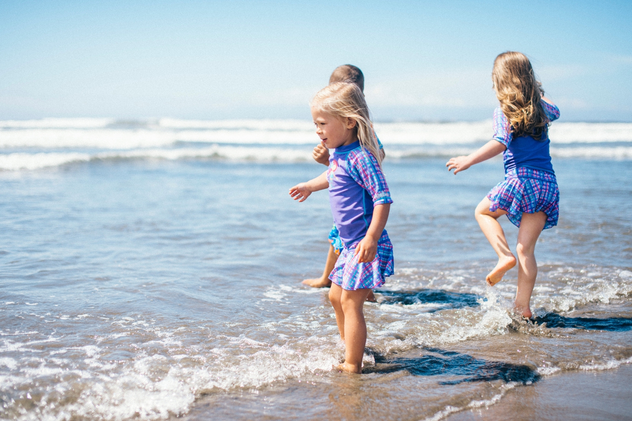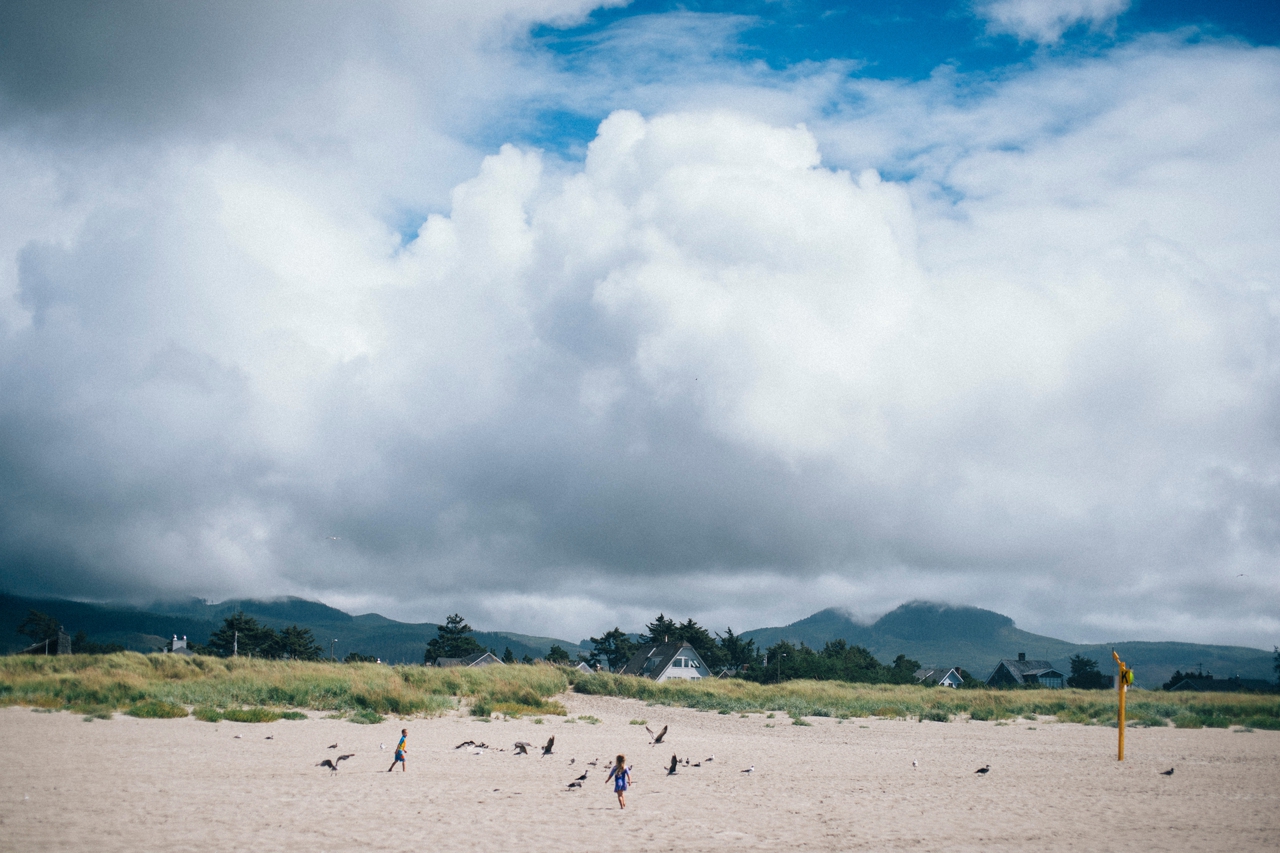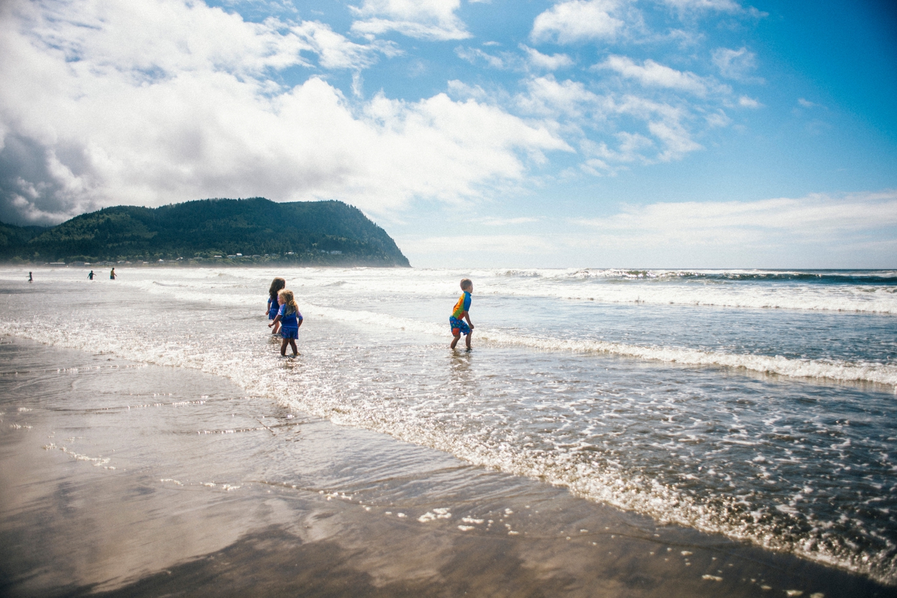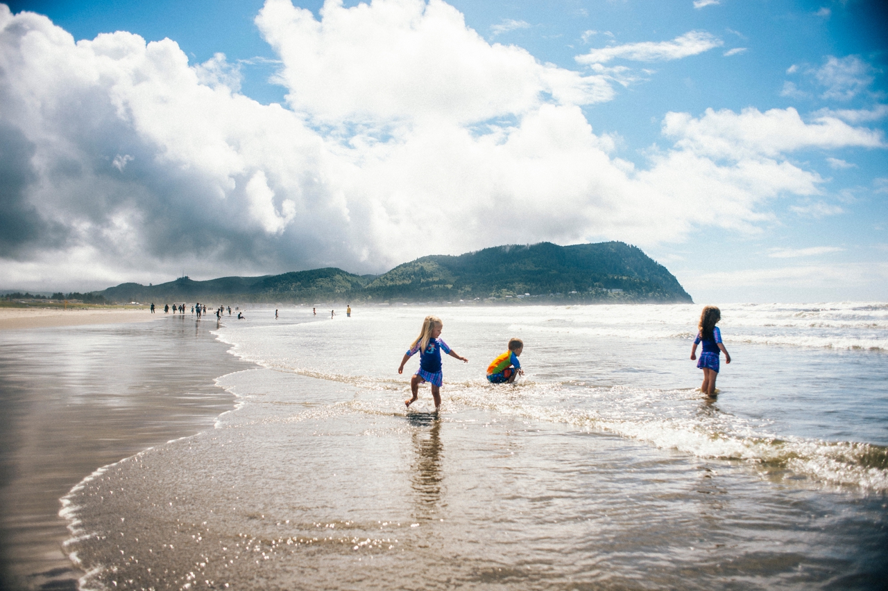 Recently I drove down to the Oregon coast to meet up with some friends who were staying in a beach house with some extended family for the weekend. We walked down to the shore and played in the sand and jumped in the waves. The weather was absolute perfection and we had the only little pocket of sunshine on the beach, completely surrounded by rain clouds. Nothing stops kids from getting in the water though. And, since I’m posting this on a weekend that’s been 95 degrees plus (even at the PNW beaches of Washington and Oregon!) nothing sounds better than sticking my toes in the sand and walking out in the waves of the Pacific Ocean.