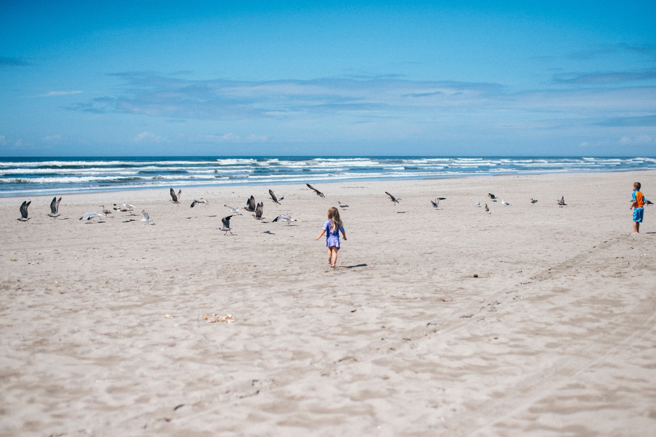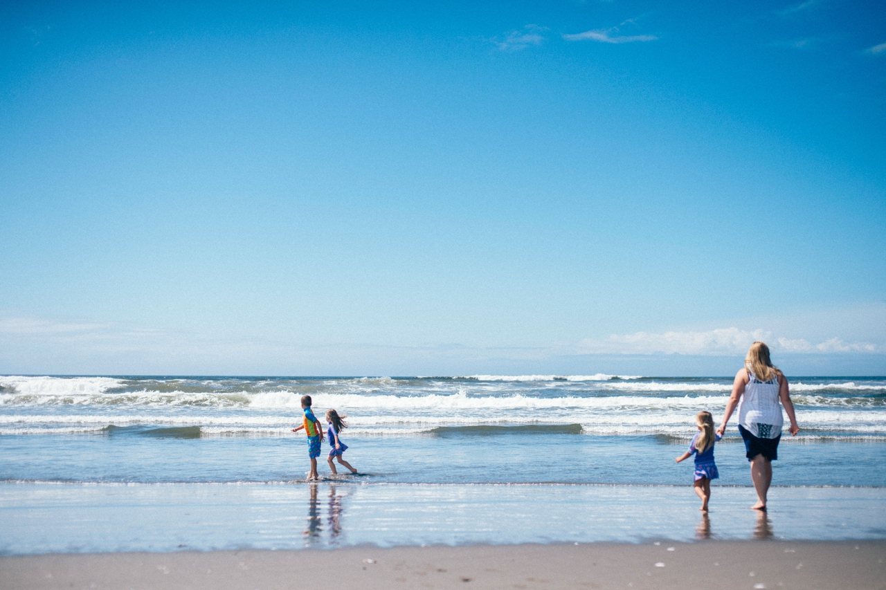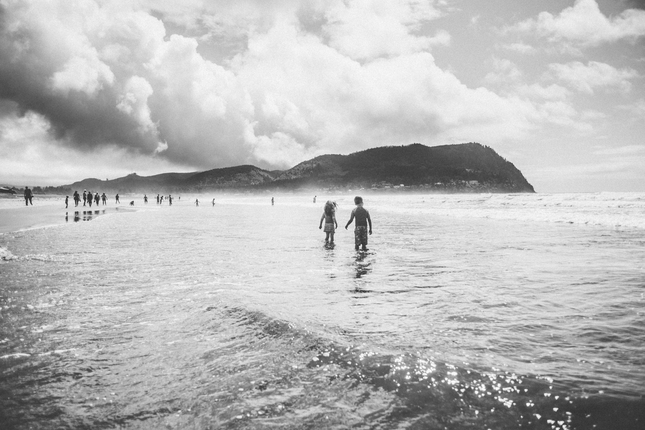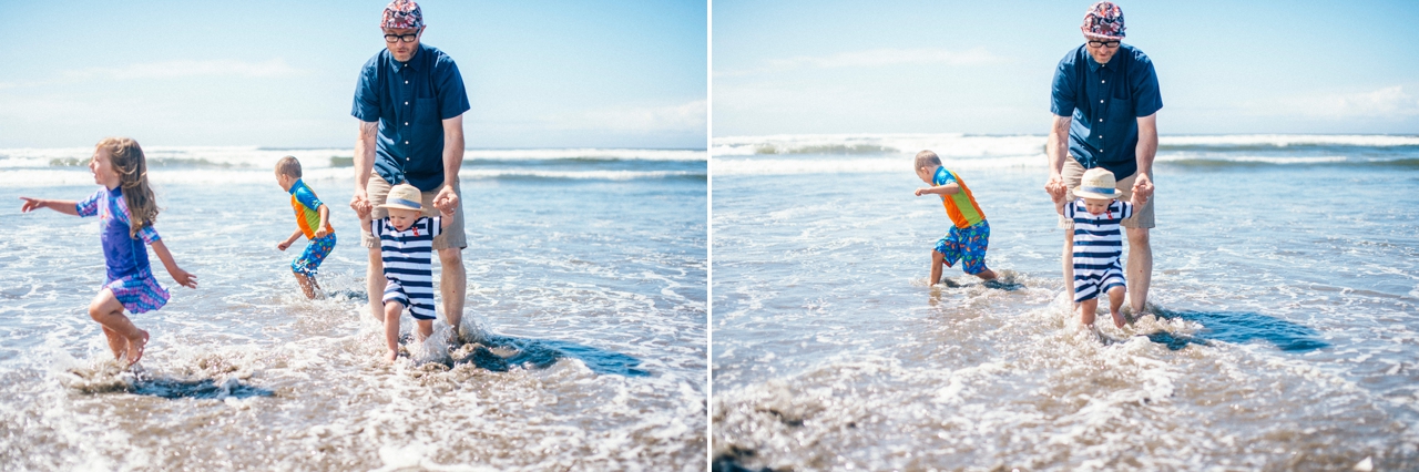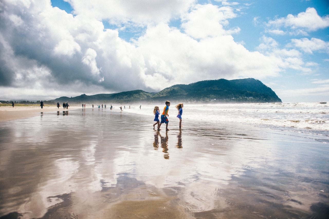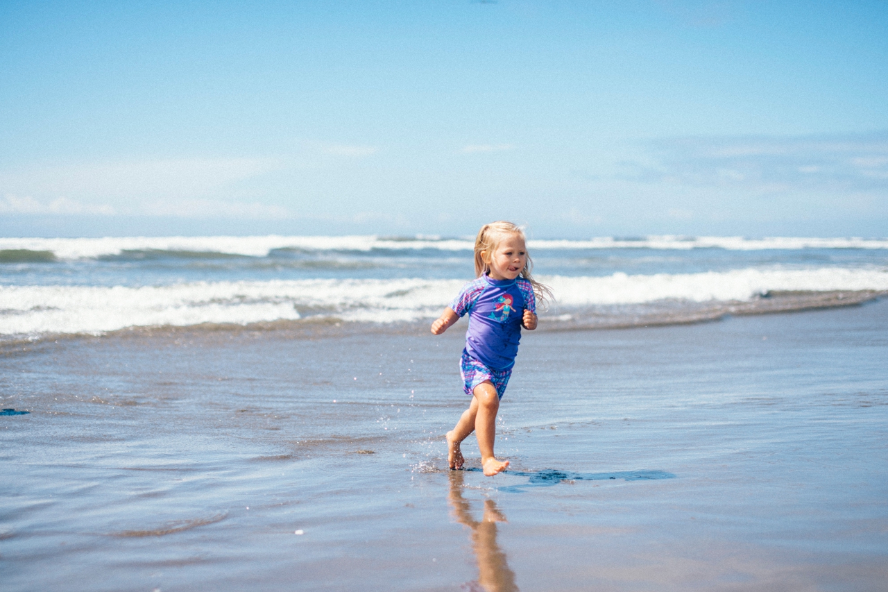 Recently I drove down to the Oregon coast to meet up with some friends who were staying in a beach house with some extended family for the weekend. We walked down to the shore and played in the sand and jumped in the waves. The weather was absolute perfection and we had the only little pocket of sunshine on the beach, completely surrounded by rain clouds. Nothing stops kids from getting in the water though. And, since I’m posting this on a weekend that’s been 95 degrees plus (even at the PNW beaches of Washington and Oregon!) nothing sounds better than sticking my toes in the sand and walking out in the waves of the Pacific Ocean.