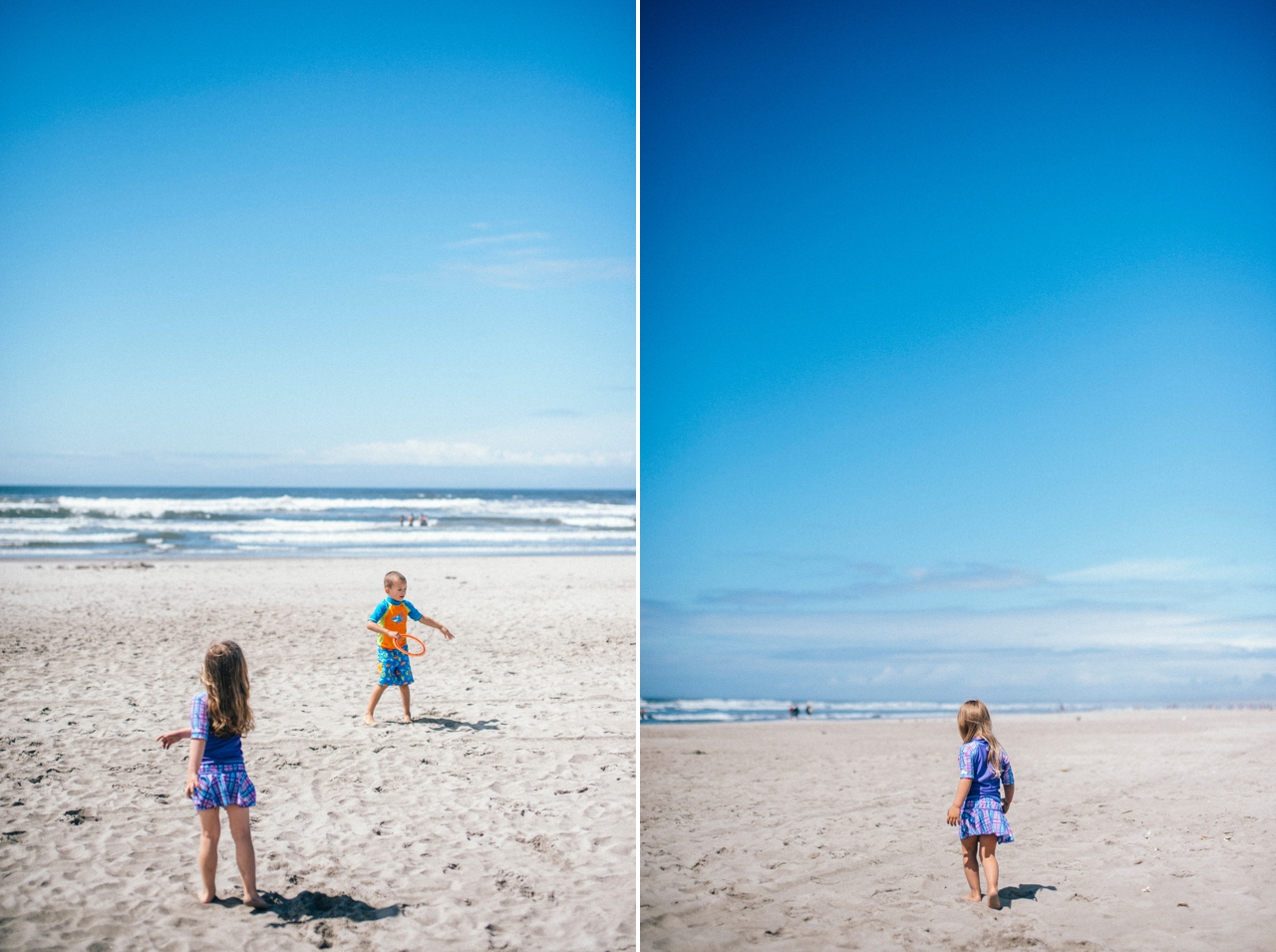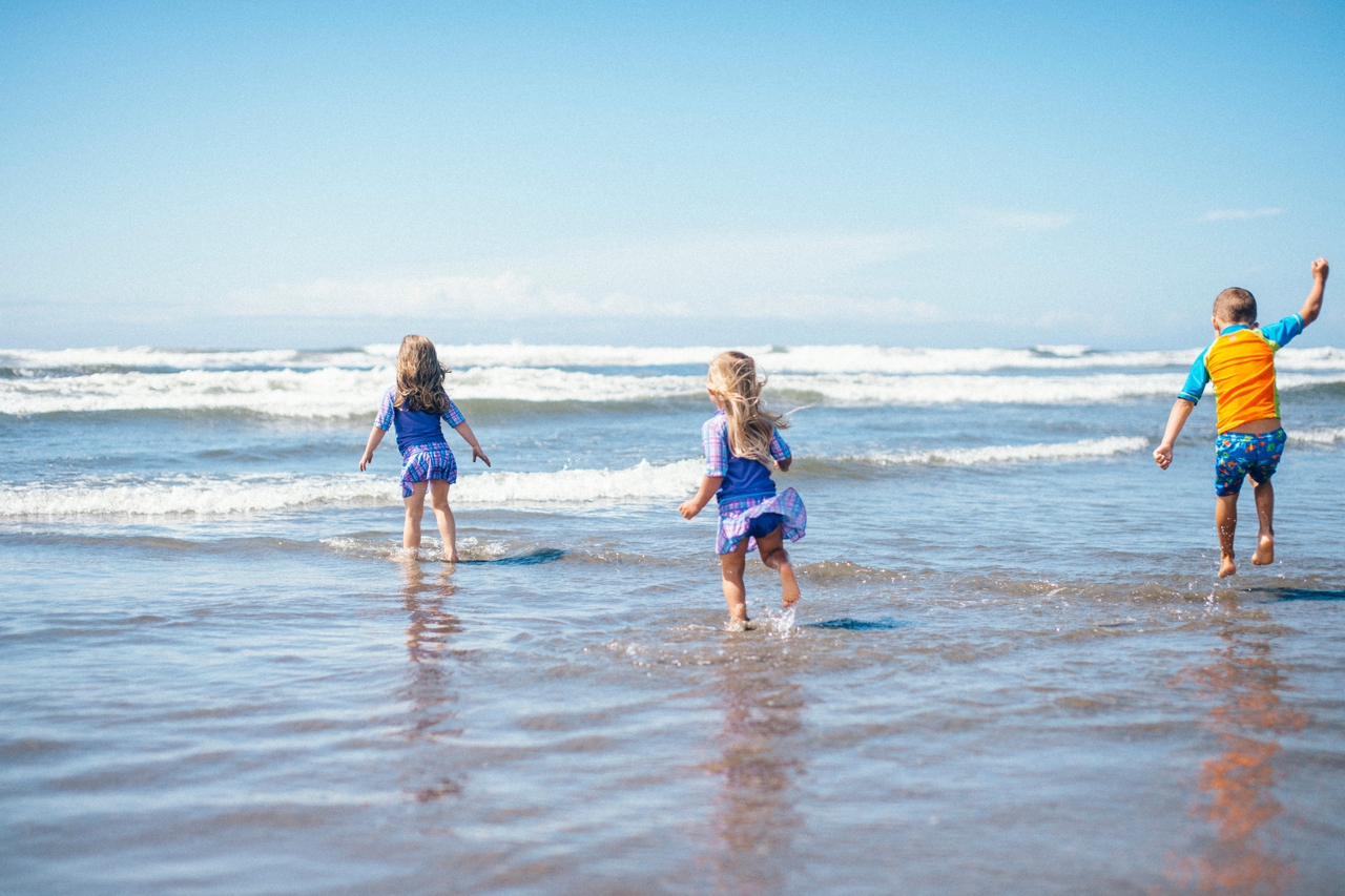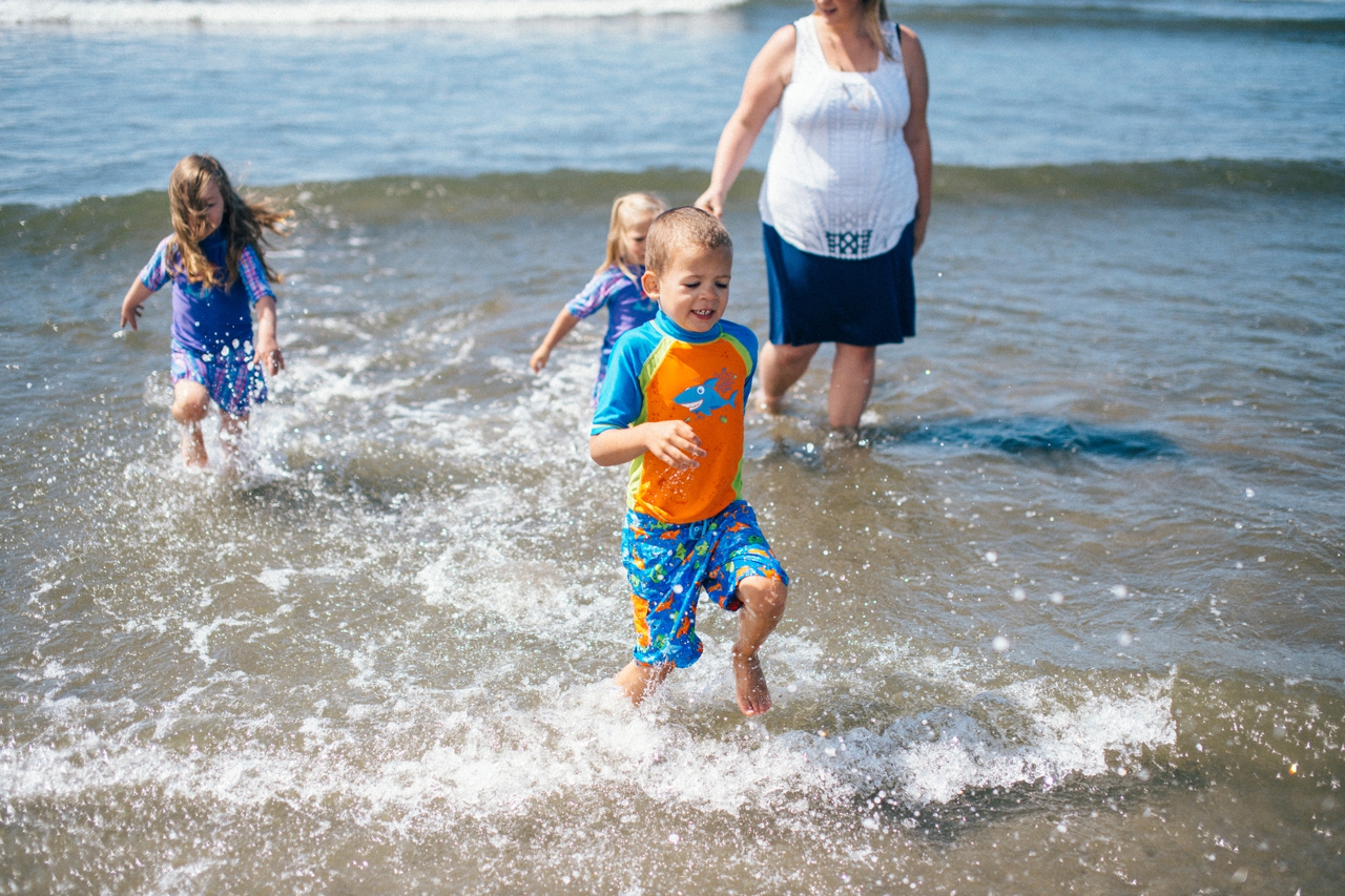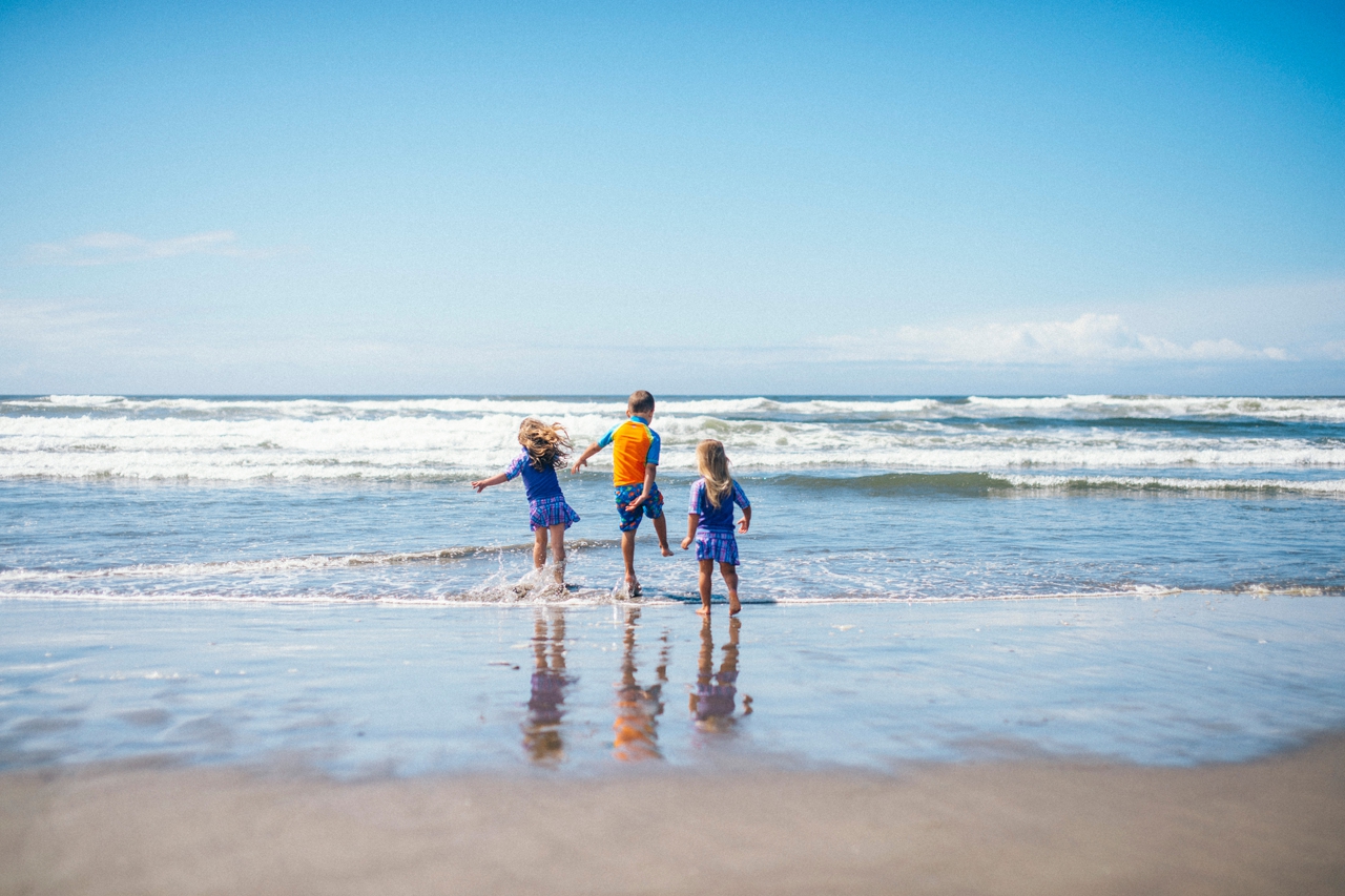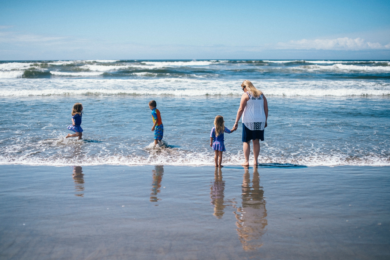 Recently I drove down to the Oregon coast to meet up with some friends who were staying in a beach house with some extended family for the weekend. We walked down to the shore and played in the sand and jumped in the waves. The weather was absolute perfection and we had the only little pocket of sunshine on the beach, completely surrounded by rain clouds. Nothing stops kids from getting in the water though. And, since I’m posting this on a weekend that’s been 95 degrees plus (even at the PNW beaches of Washington and Oregon!) nothing sounds better than sticking my toes in the sand and walking out in the waves of the Pacific Ocean.