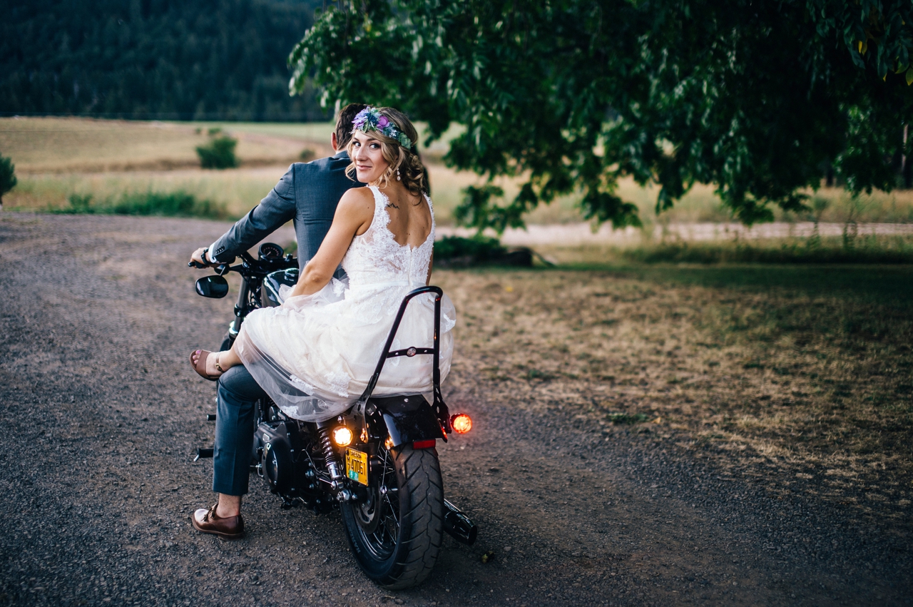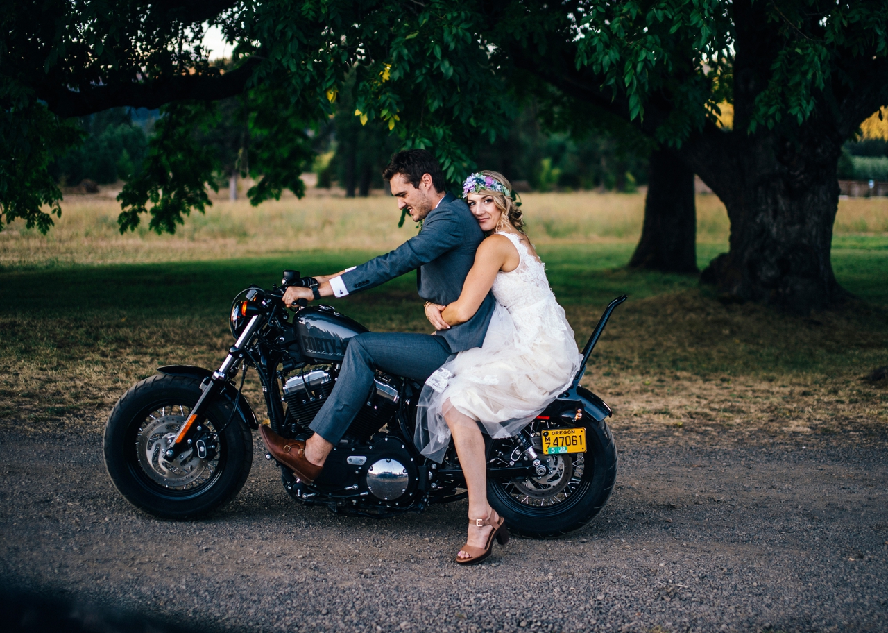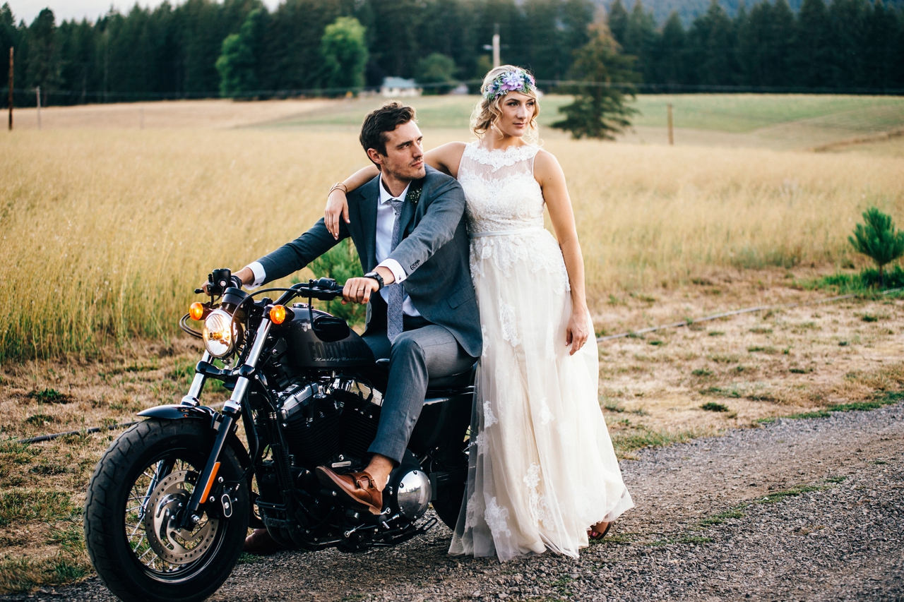 From venue, to attire, to the wedding party, to the stars, to the motorcycle (all the heart eyes)