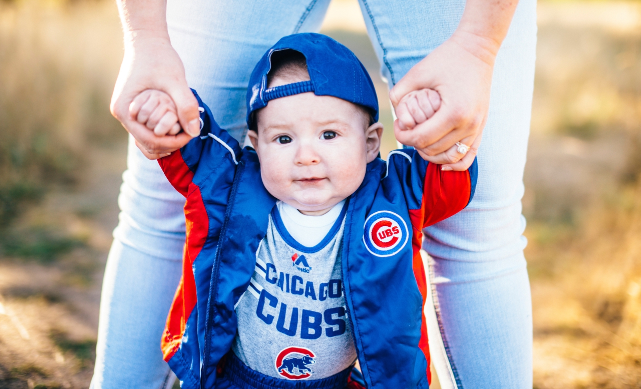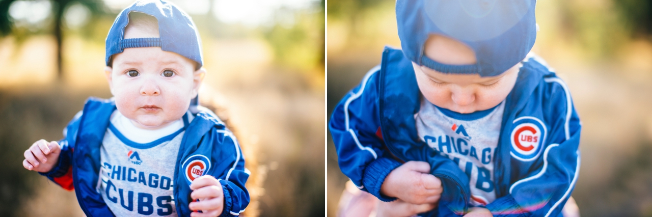 Sweet little Benji was a fresh six months for these photos and practicing all his well-honed skills, a wobbly sit up, tummy time, chewing, napping, funny faces…. this kid is a total doll. Not to mention in his Chicago Cubs outfits? The perfect little mascot for a dream of a season for Cubs fans! People much older than him have been waiting their whole lives to sport their cubs gear well into late October baseball!