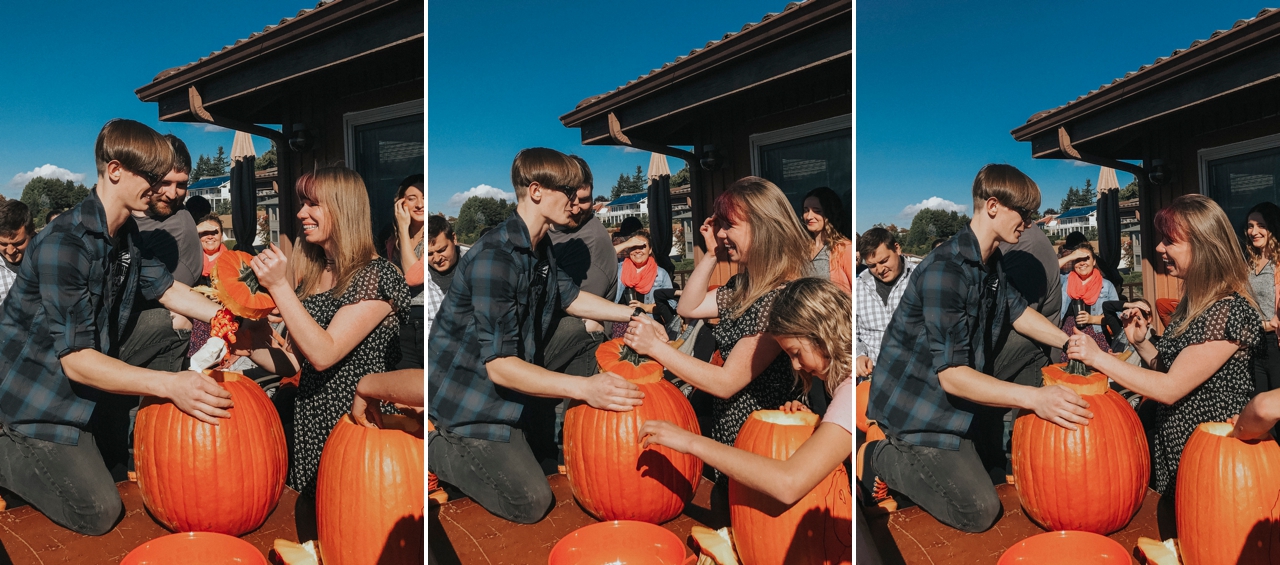 This afternoon we gathered for a pumpkin carving contest and to “celebrate David’s birthday” (happy birthday!!) but really – we knew there was a proposal on the line!