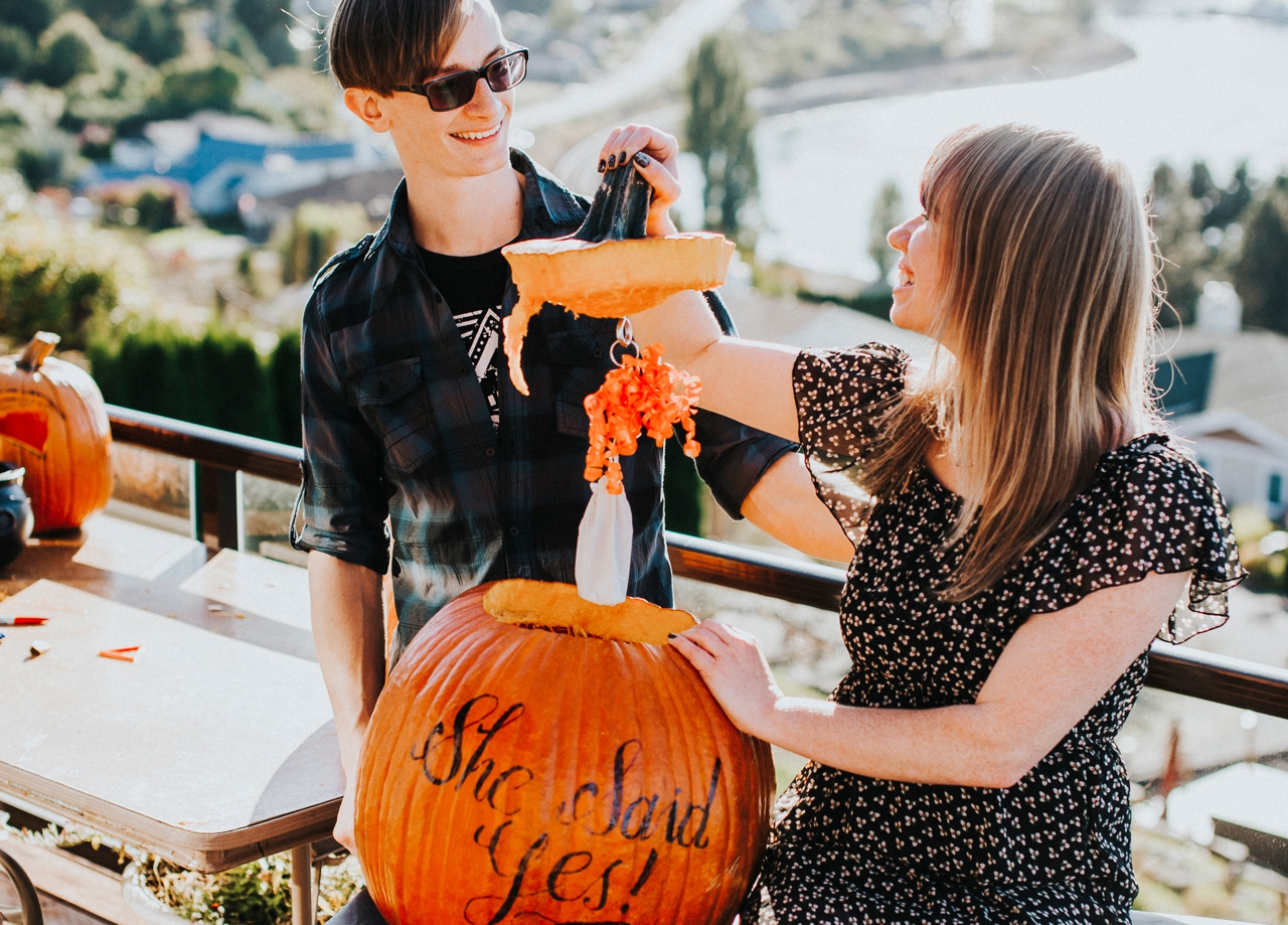 Shannon: “I had a feeling it was coming, but on his birthday and IN A PUMPKIN? I was truly speechless, but was still able to say YES!”